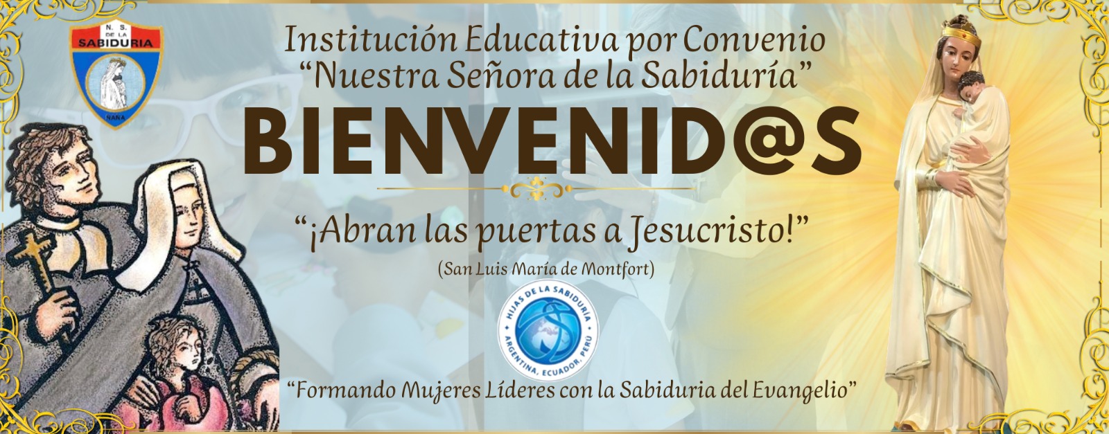 Bienvenida querida Comunidad Educativa: estudiantes, padres y madres de familia y personal en su conjunto que laboran en esta bella casa del Saber. Como Hijas de la Sabiduría les abrimos las puertas en este inicio del año escolar 2026, acogiéndol@s con ternura, cariño y mucho amor. Que Jesús Sabiduría Eterna y Encarnada, acompañado por María nuestra Madre nos haga caminar, como peregrino@s de Esperanza, promoviendo bienestar y vida plena desde nuestras acciones educativas. Entregamos todo a Nuestra Señora de la Sabiduría.”(Hna. Rosa Amelia HdlS).